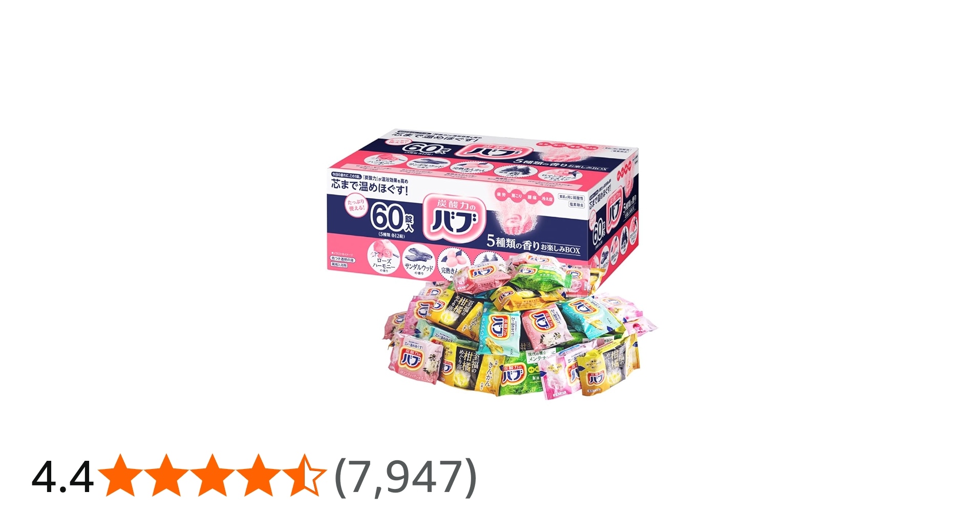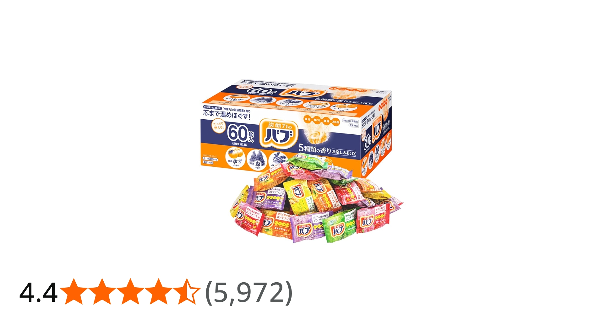 この「バブ 5種類の香りお楽しみBOX(60錠)」については、その魅力は、なんといっても60錠という大容量。